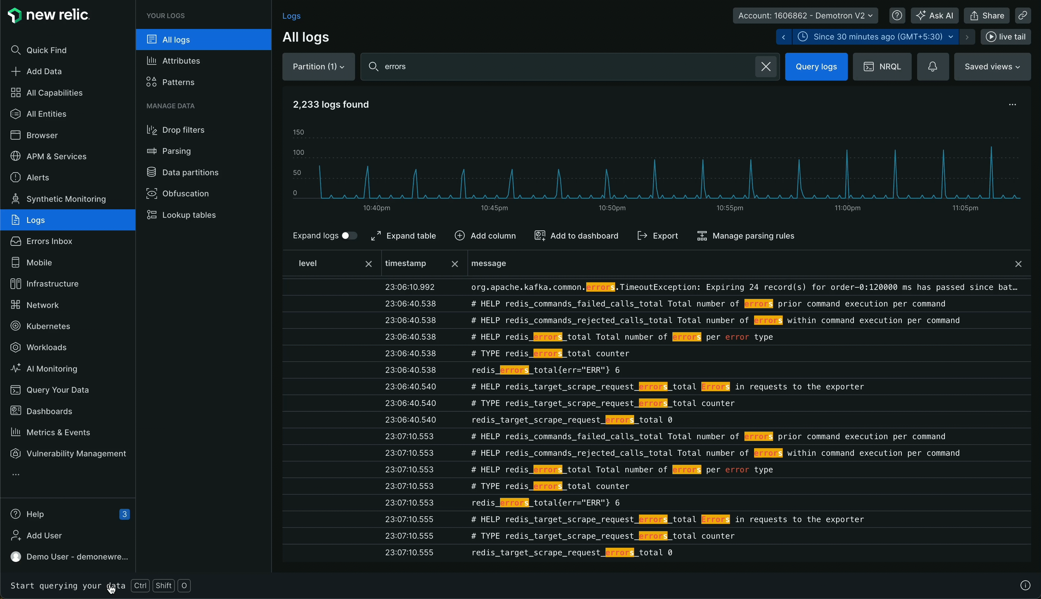 - Go to one.newrelic.com > All capabilities > Logs.