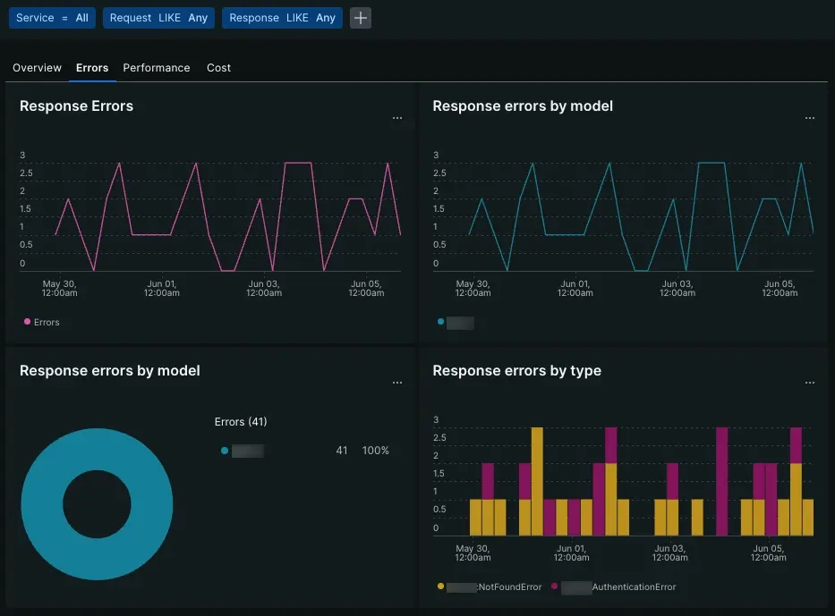 • Response errors by model: Determine if one specific model produces more errors on average, or if one specific error is occurring across your models.