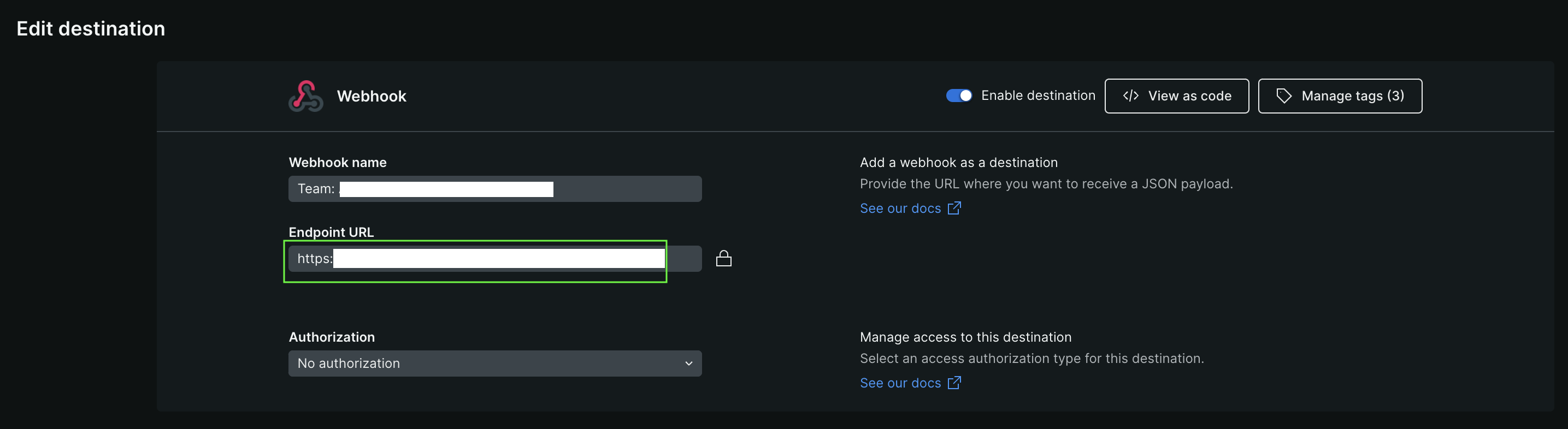 2. Click the required webhook destination linked to Microsoft Teams to edit.