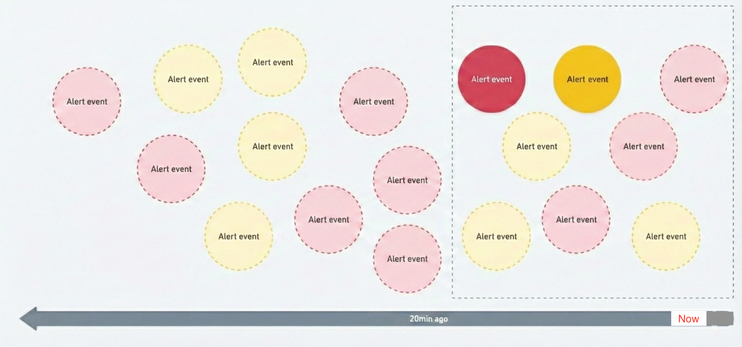 Real-time correlation (decisions): In contrast, real-time correlation targets distinct issues, with each issue potentially encompassing multiple alert events. The aim is to detect and connect patterns across these multiple alert events to identify underlying issues for more efficient correlation. Real-time correlation leverages live data streams, allowing for prompt identification and response to emerging problems.