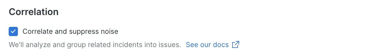 Check the box Correlate and suppress noise to enable correlation for the alert policy.