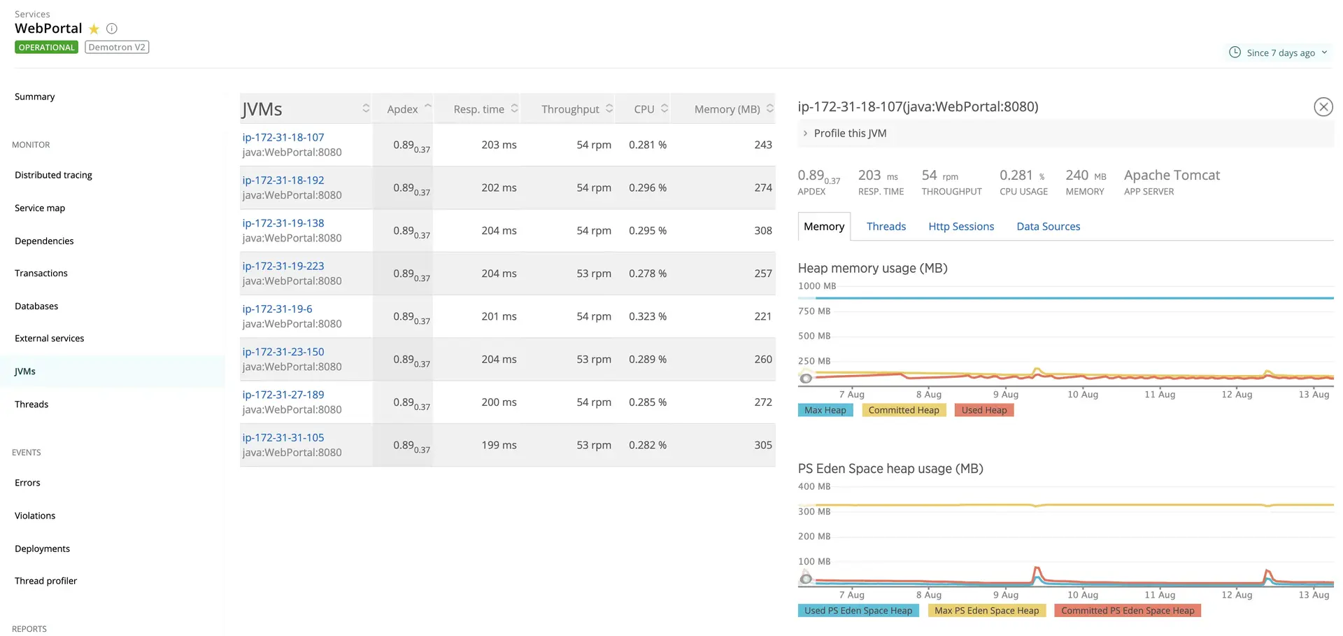 APM Java JVMs page
