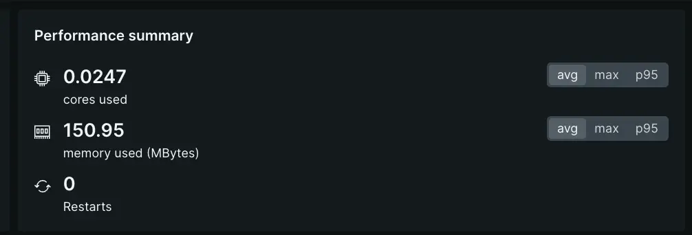 The Kubernetes APM summary page provides general information about the selected application, including the age of the current deployment, the number of pods available, CPU and memory usage, pod logs, and metric comparison.