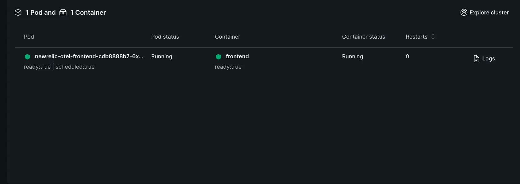 The Kubernetes summary page works with a mix of instrumentation providers (New Relic and OpenTelemetry). However, if Kubernetes is monitored by OpenTelemetry agents and APM is monitored by New Relic agents, install nri-metadata-injection to ensure it works properly by providing the necessary Kubernetes metadata to the APM metrics.