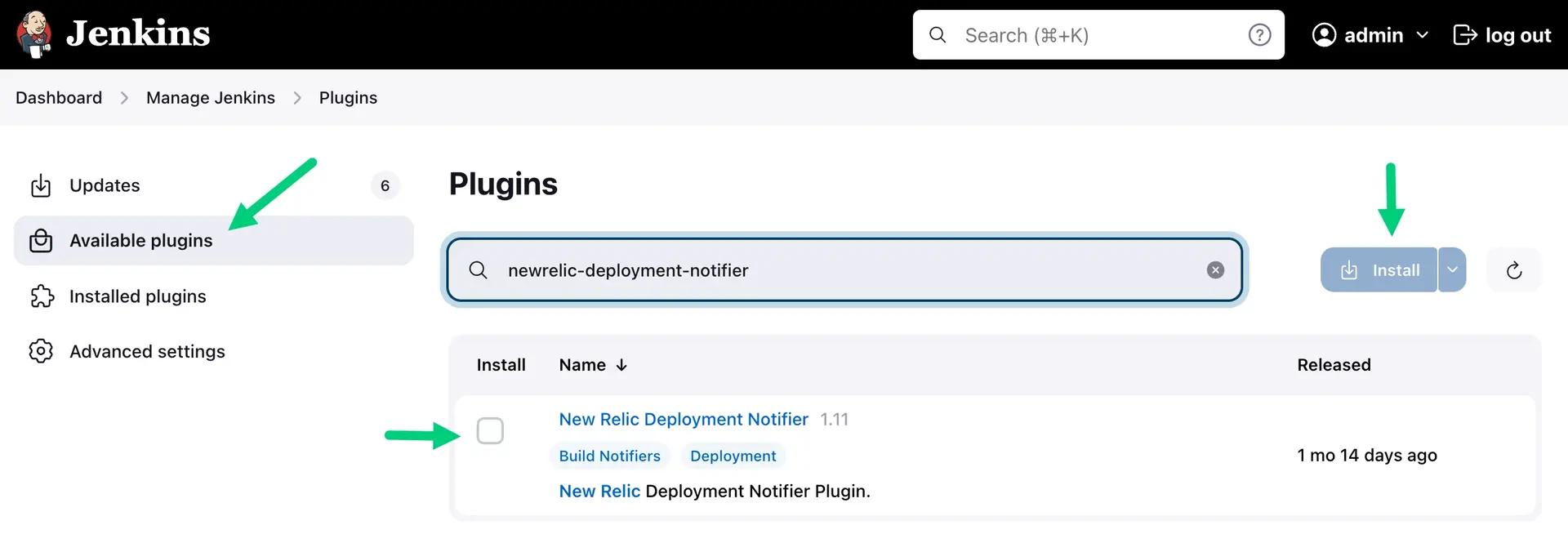 newrelic-deployment-notifier. Click Install.