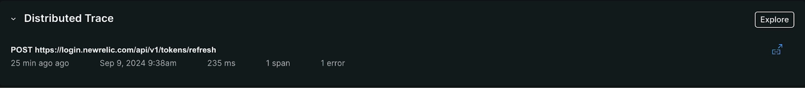 Screenshot of the request errors distribute trace section