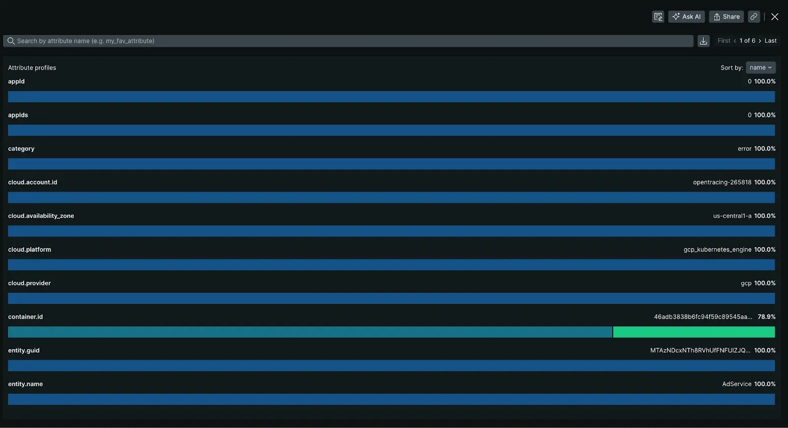 • Filtering: Many New Relic customers instrument custom attributes. Filtering on a specific custom attribute can quickly cut through the noise of all error occurrences.