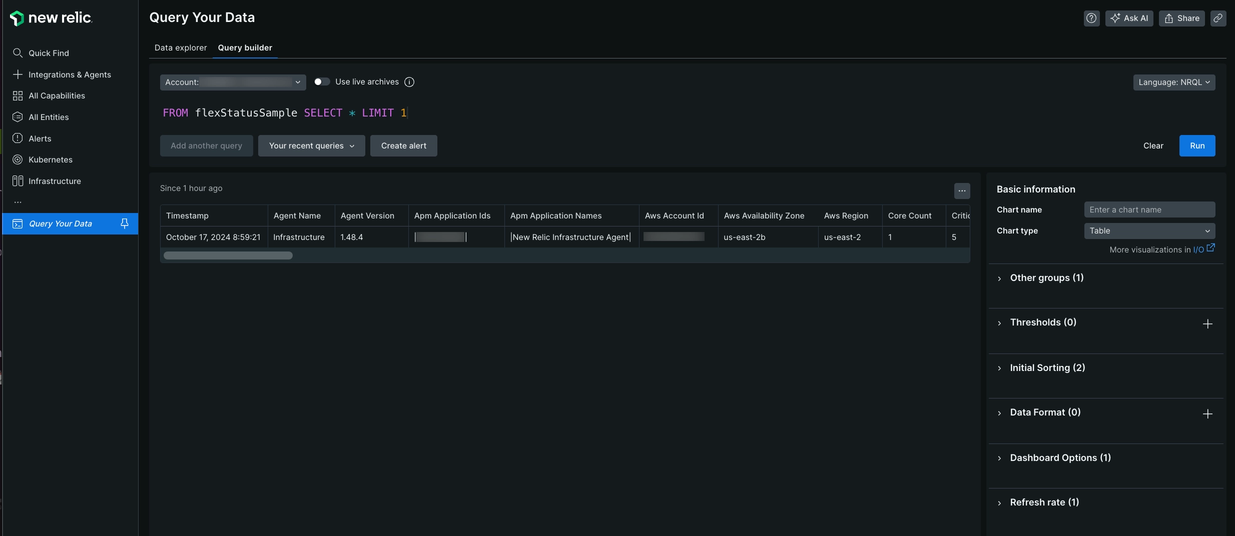 Go to one.newrelic.com > All capabilities > Query your data, add your query in the query builder, and click Run.