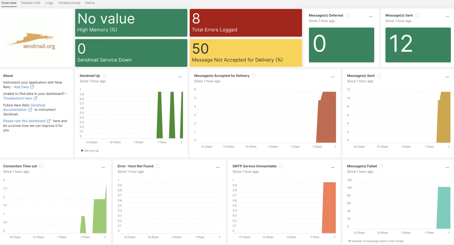 Our Sendmail integration monitors the performance of your Sendmail mail transfer agent, helping you quickly instrument and monitor your agent.