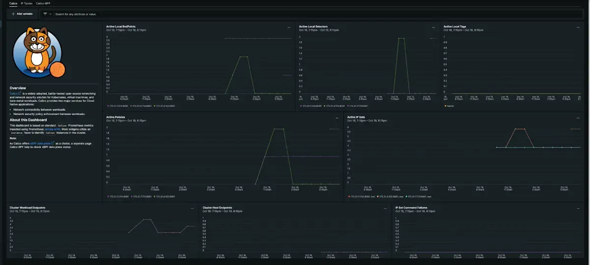 - BPF specific metrics if BPF is used as a dataplane for Calico
