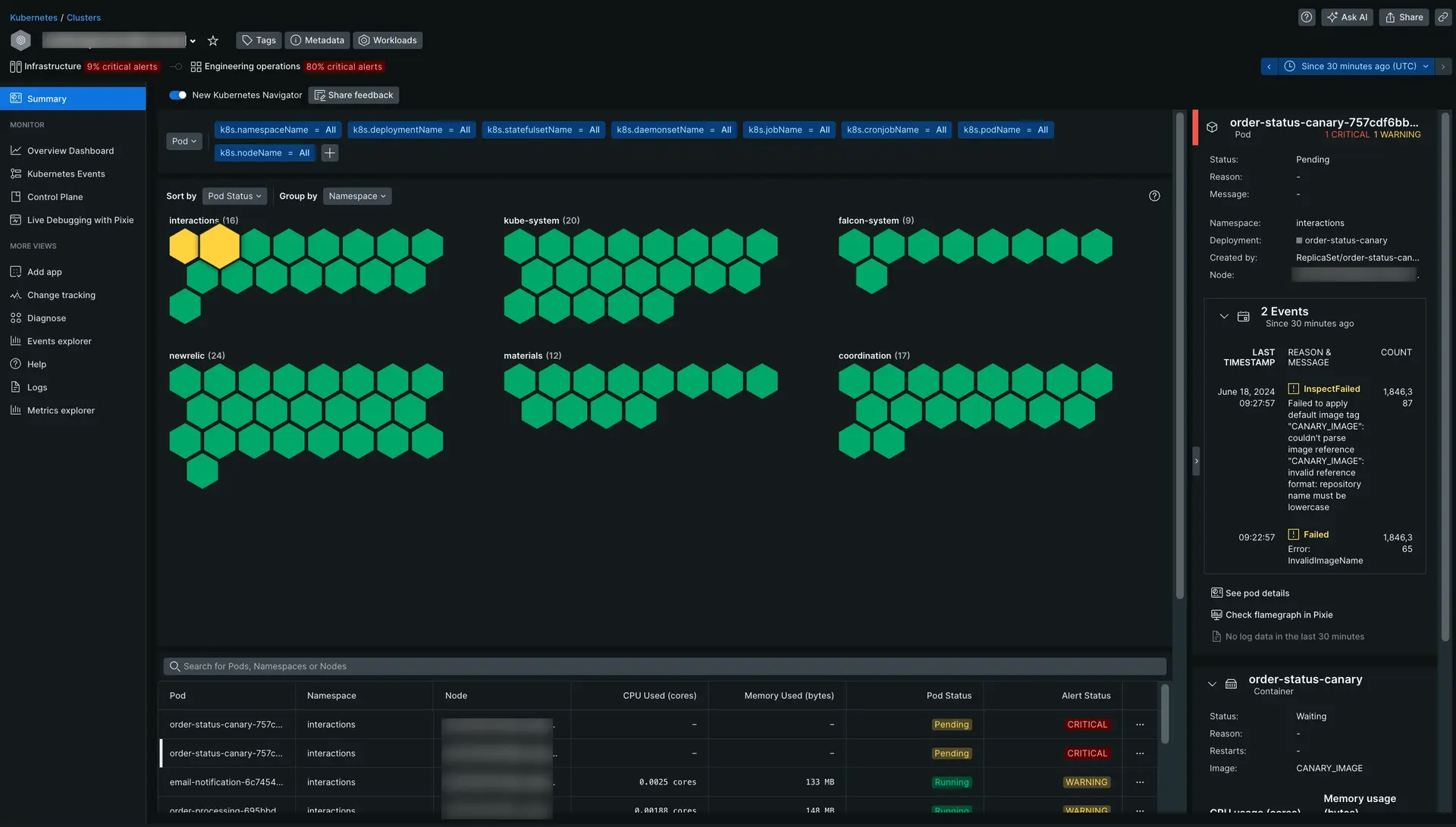 Go to one.newrelic.com > All capabilities > Kubernetes and choose your cluster. The cluster explorer is our handy, all-in-one solution for all your Kubernetes needs when you're running at large scale.
