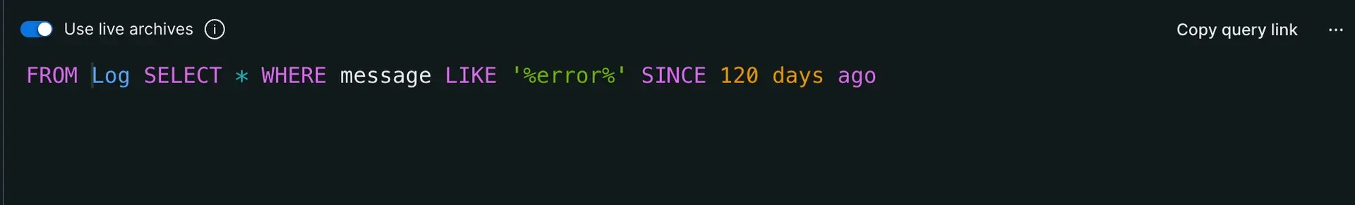 The live archives feature offers long-term log data storage that you intend to query sparingly for a lower storage cost. With live archives, you can have peace of mind knowing your logs are available for a longer period for potential audits or long-term debugging, but you will be charged separately for storage and querying your old data.