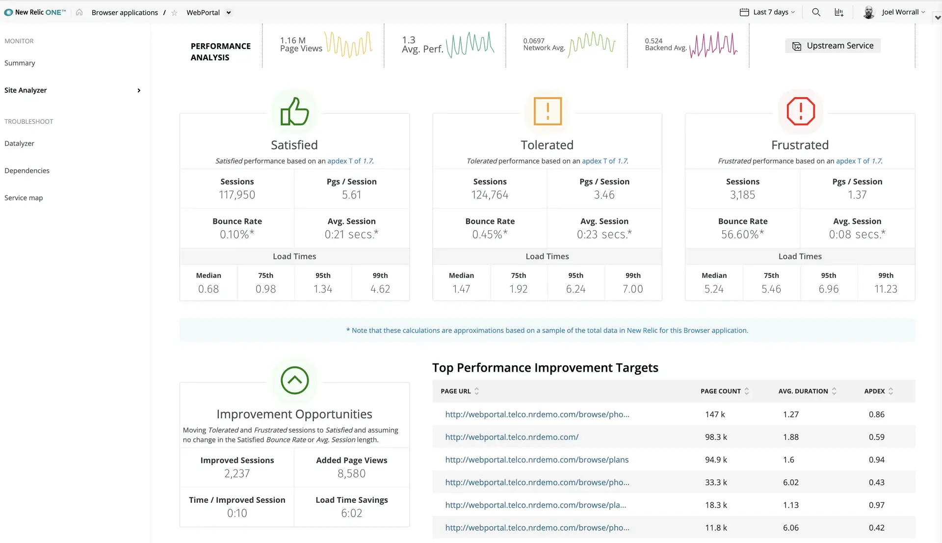 one.newrelic.com: Here's an example of a custom application built on New Relic. This application gives a highly detailed analysis of a website, using the PageView events reported from our .