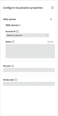 "configuration": [ { "name": "nrqlQueries", "title": "NRQL Queries", "type": "collection", "items": [ { "name": "accountId", "title": "Account ID", "description": "Account ID to be associated with the query", "type": "number" }, { "name": "query", "title": "Query", "description": "NRQL query for visualization", "type": "nrql" } ] }, { "name": "fill", "title": "Fill color", "description": "A fill color to override the default fill color", "type": "string" }, { "name": "stroke", "title": "Stroke color", "description": "A stroke color to override the default stroke color", "type": "string" }]In this example, nrqlQueries is a collection of query objects. Each query object consists of an accountId and a query. As a collection, you can have multiple query objects in this visualization. fill and stroke are strings that define a color that you can use when rendering the visualization.