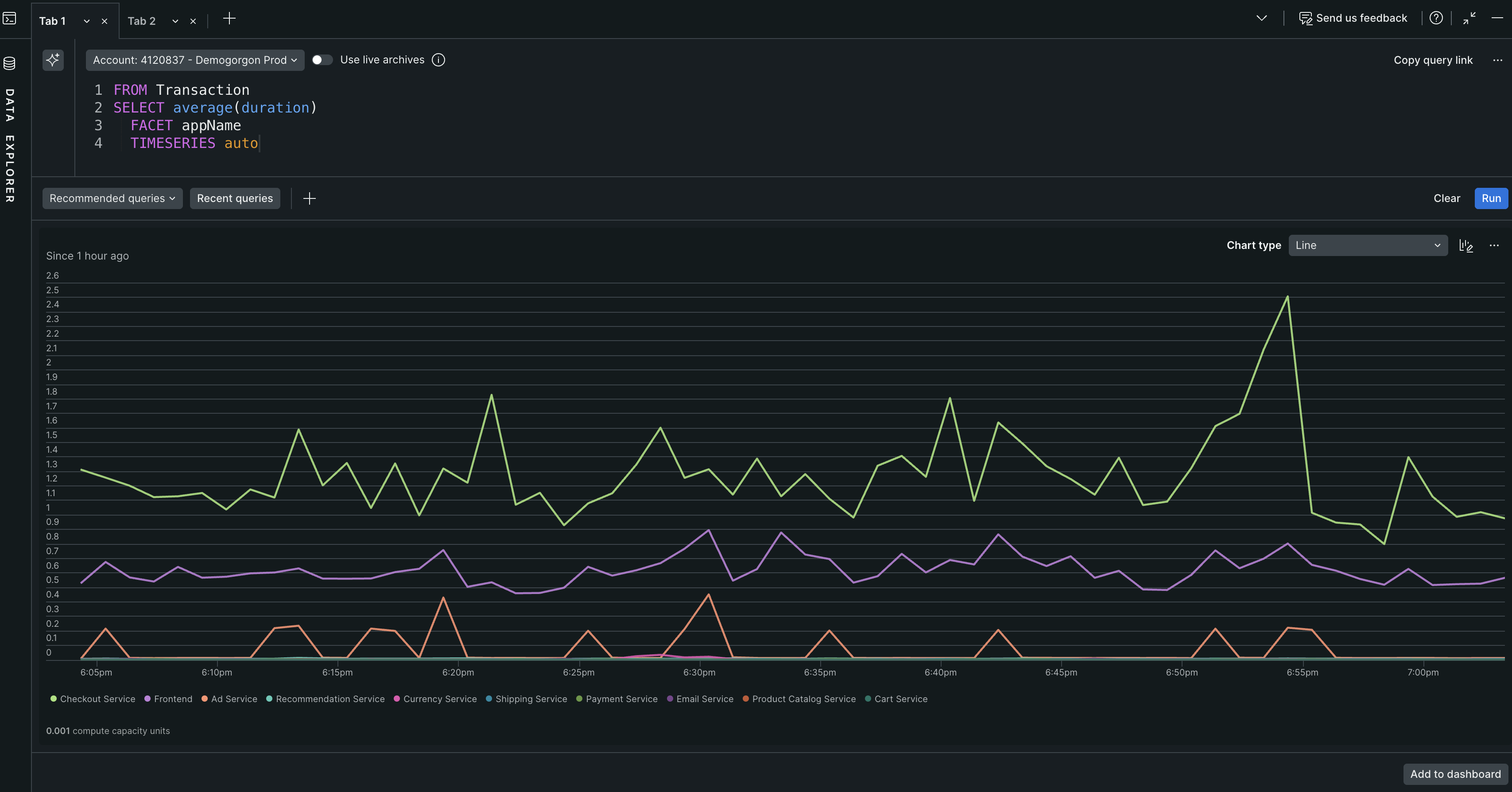 For most charts, you can view the NRQL query used to generate that chart. This can help you understand a chart better or use it as the basis for a new query.