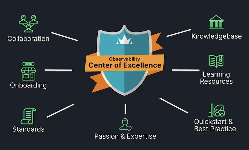 This guide focuses on how to create a Center of Excellence around observability best practices. Adopting an Observability Center of Excellence (OCoE) will help you drive standards, speed, and scale across your organization, and maximize the return on the investment in observability solutions. This is part of our series on observability maturity.
