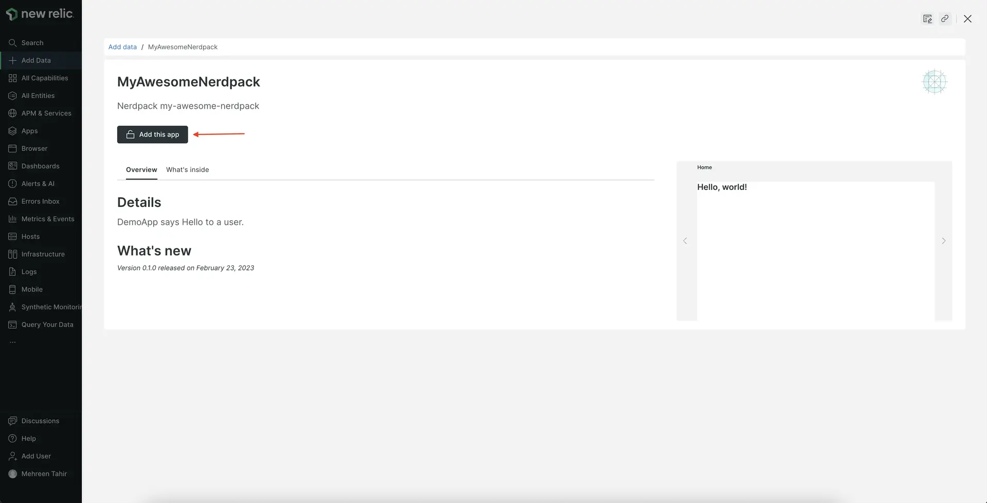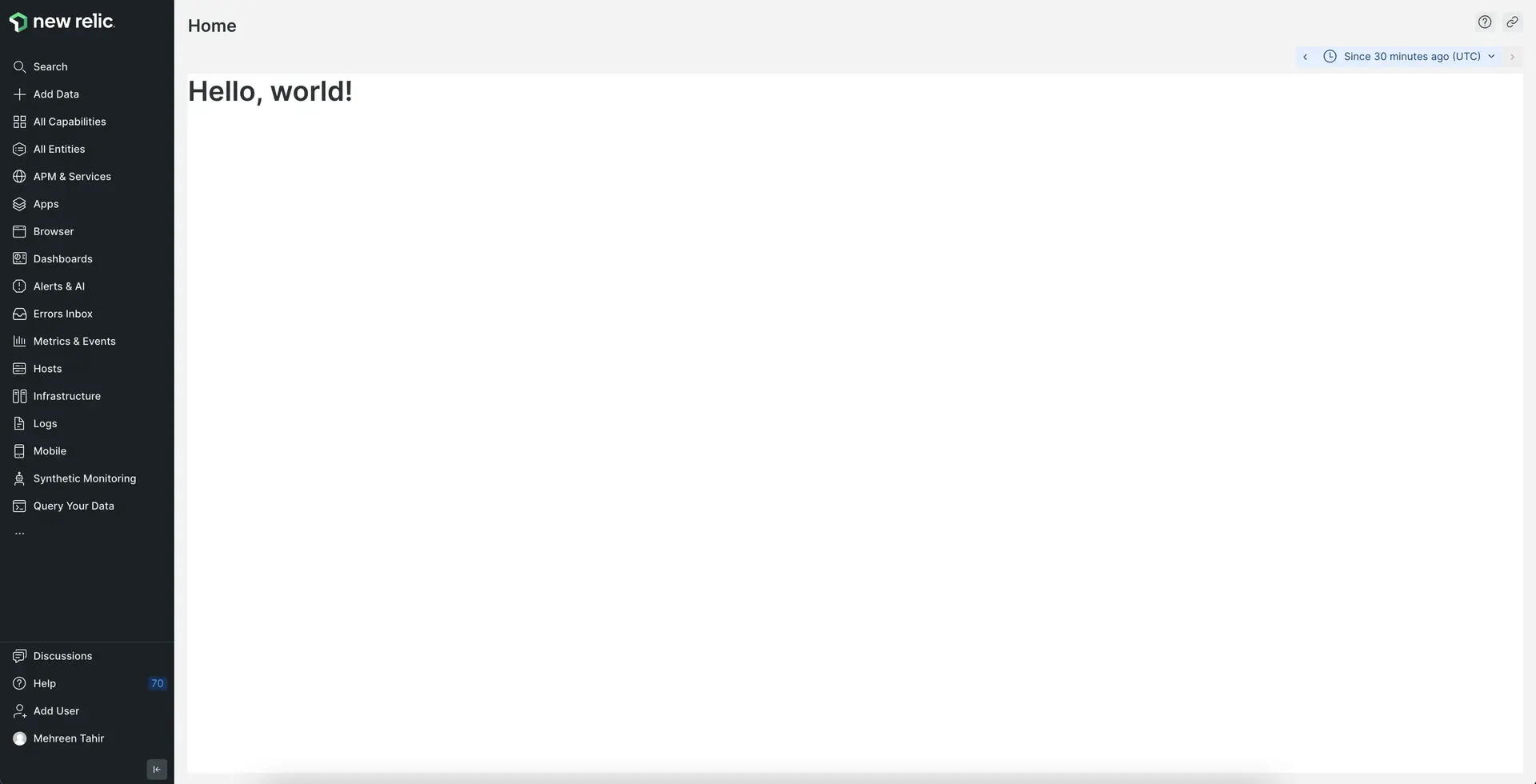 Here's how you build a "Hello, world!" application in New Relic.