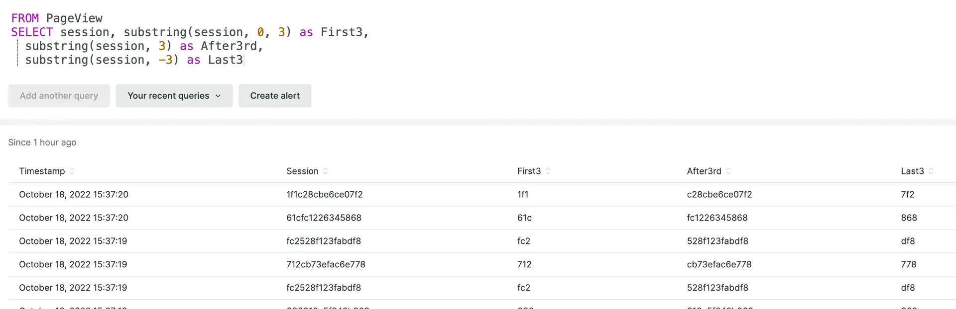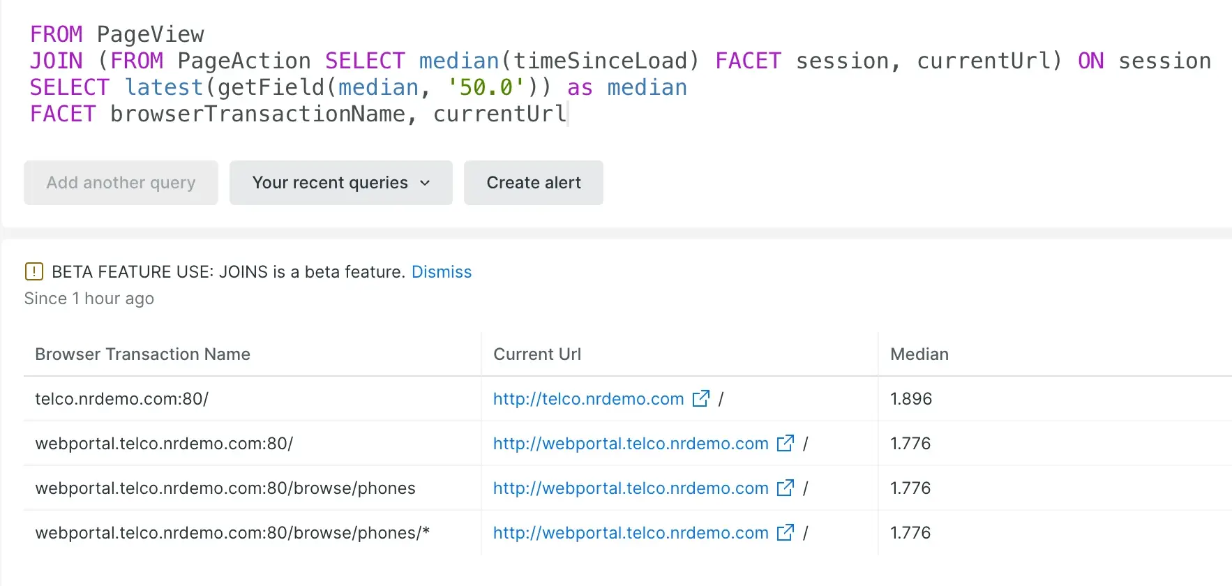 • If you're using an aggregator function multiple times in the same query (for example, SELECT median(one_metric), median(another_metric)), it can cause problems in displaying results. To solve this, use the AS function. For example: