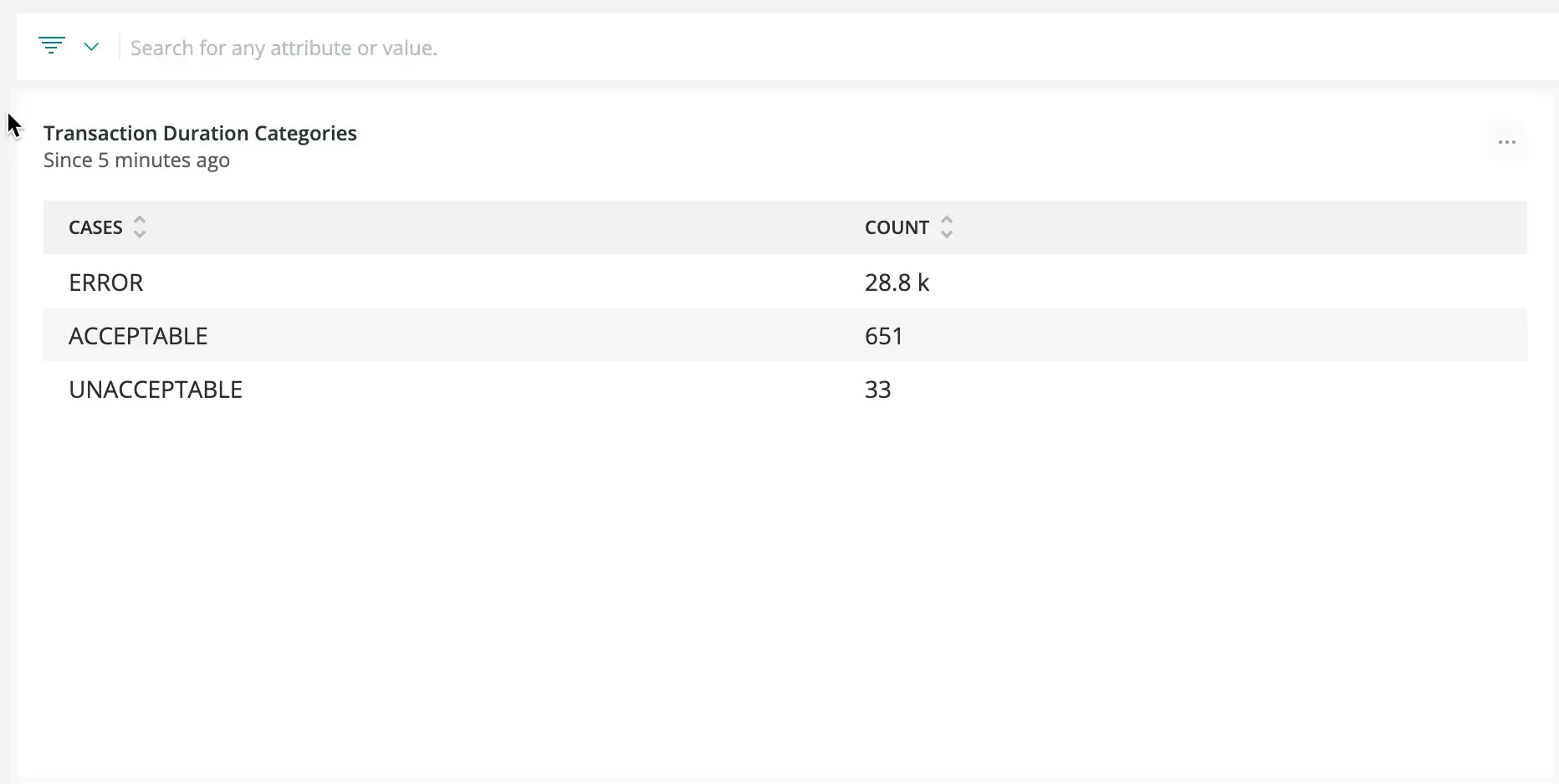 By using FACET CASES, we can more efficiently use multiple complex conditions to generate a set of custom facets. Building on the previous example, let's say we want to include a compound condition which excludes errors from our duration data and adds them into a third category: