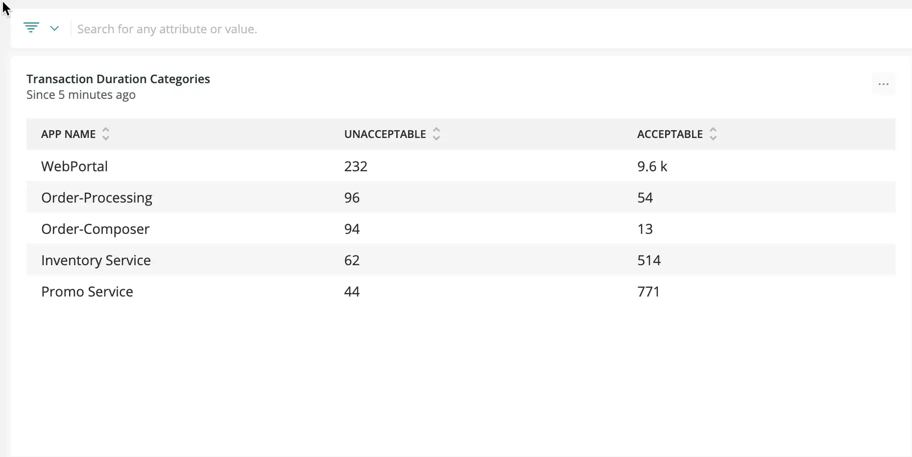 Let's say you want to query some data and put the responses into mnemonic categories for a dashboard or report. This syntax will allow you to query based on transaction duration and put the results into two categories: ACCEPTABLE and UNACCEPTABLE. This can be really useful for making dashboards more human readable and actionable.