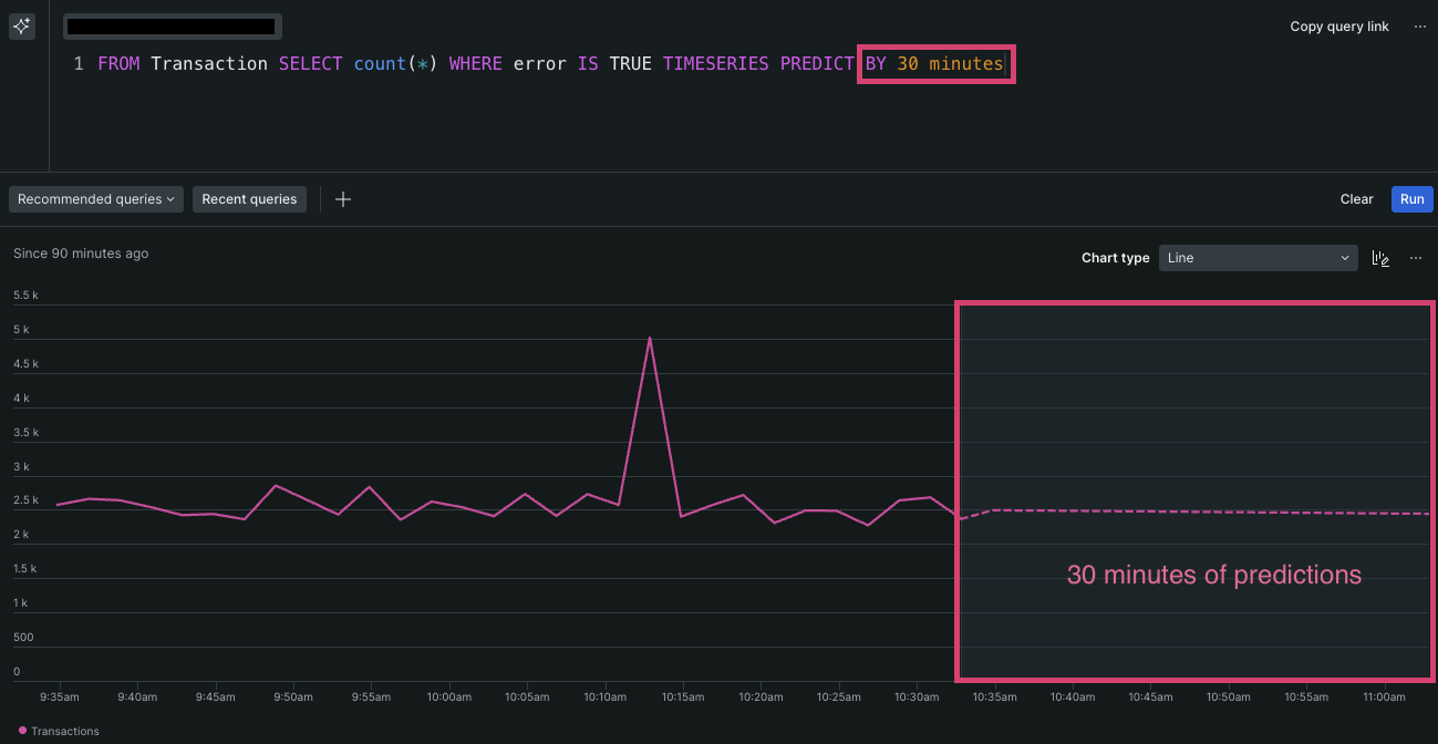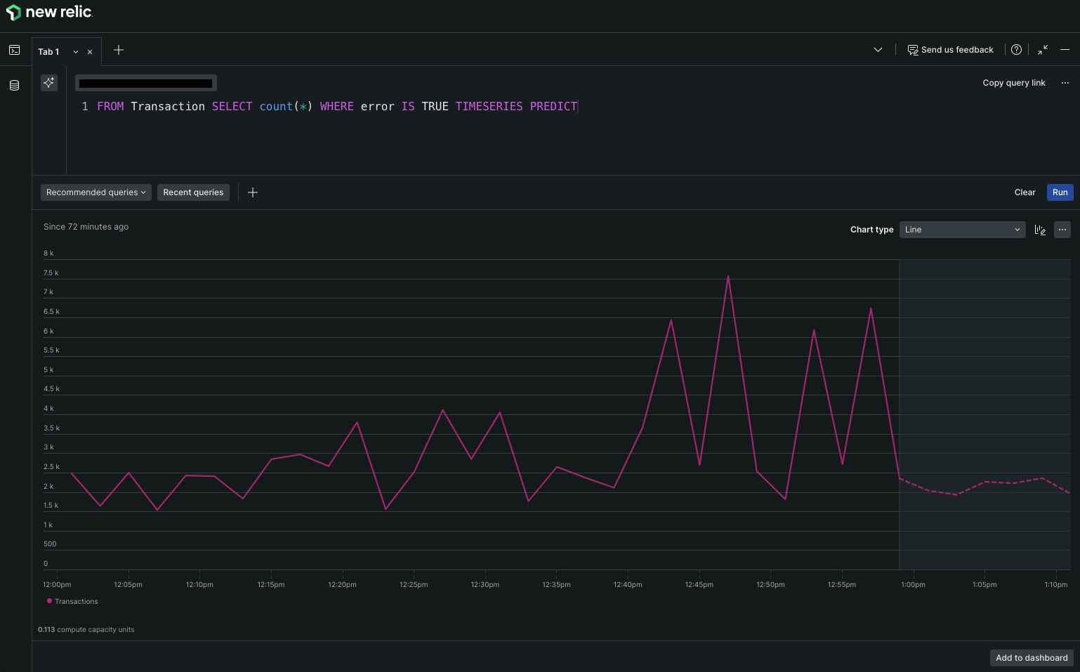 NRQL predictions are only compatible with time series queries. For more details about writing time series queries, refer to the NRQL syntax documentation on the TIMESERIES clause.