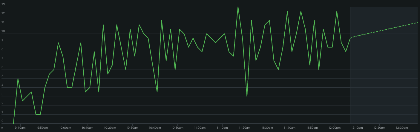 Predictions generated using NRQL predictions for a non-seasonal time series.