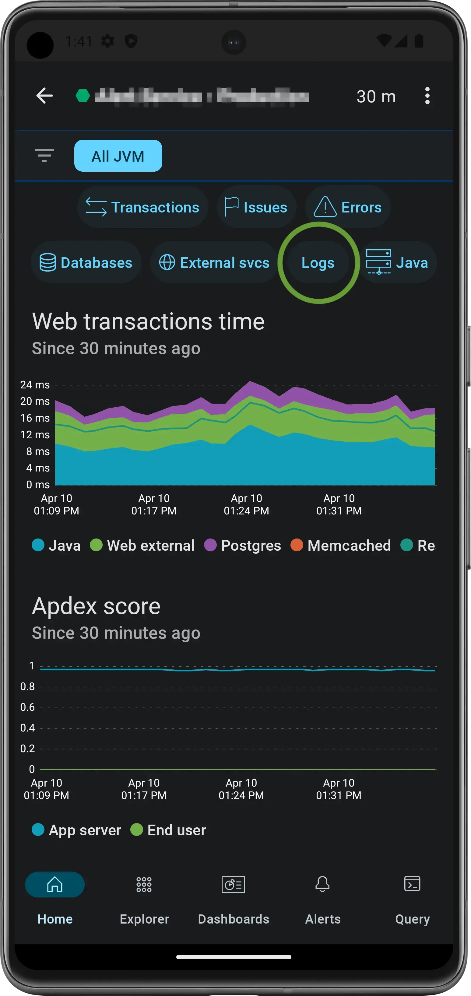 • Access Logs in your Apm detail New Relic Android 5.2.2 Screenshot C