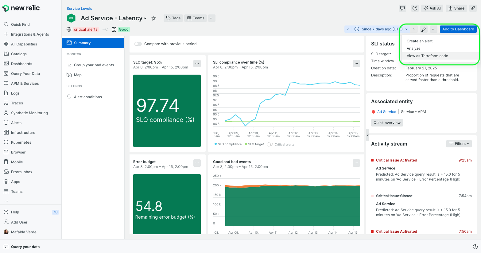 Action needed! If you automated the creation of service levels through Terraform or Nerdgraph, you need to adapt your scripts to always define one SLO per SLI.