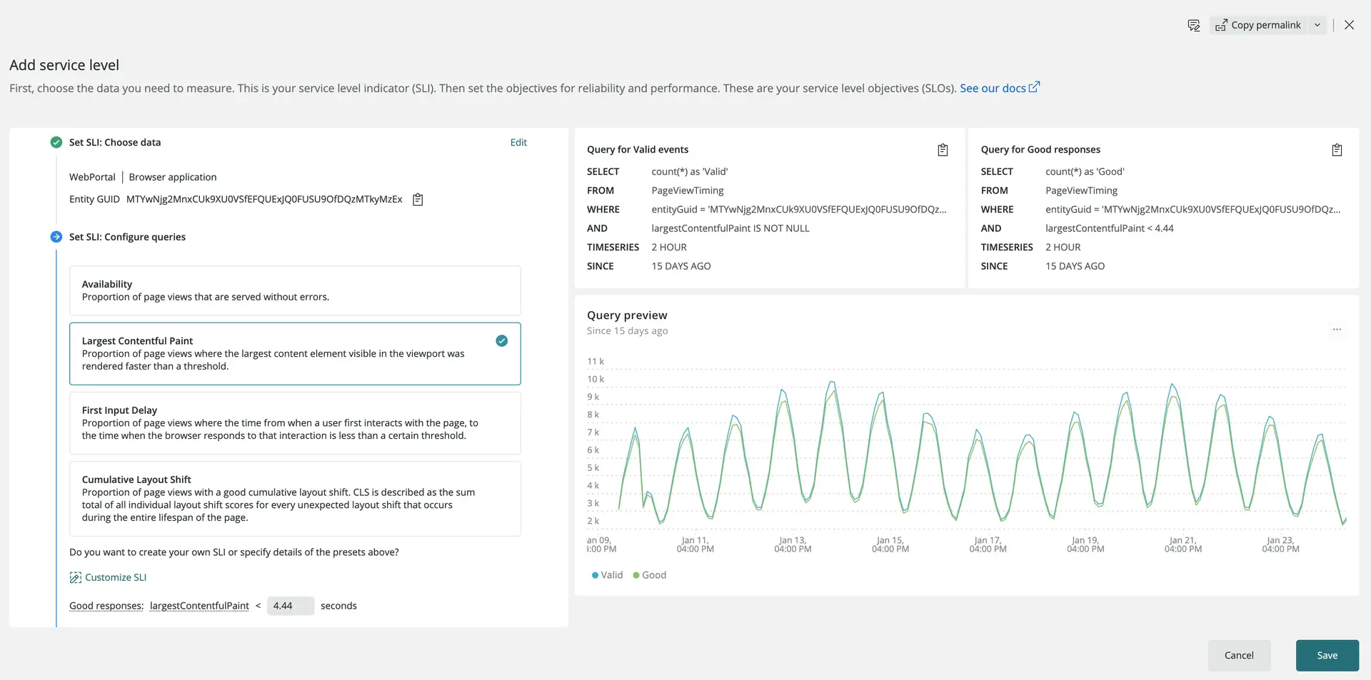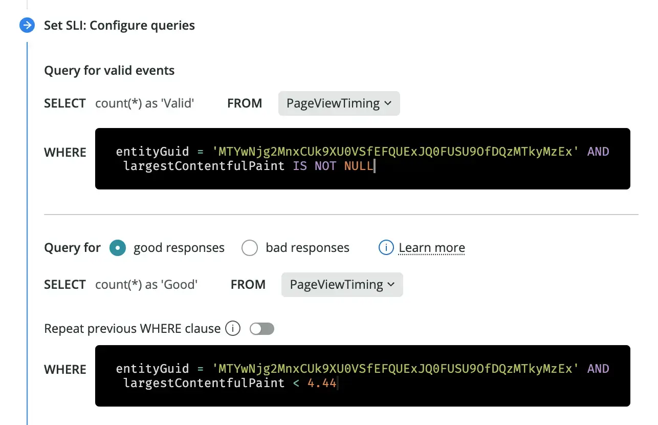 We've added suggestions and validations for the NRQL queries on the setup flow, so now it's easier to customize service level parameters and exceptions.