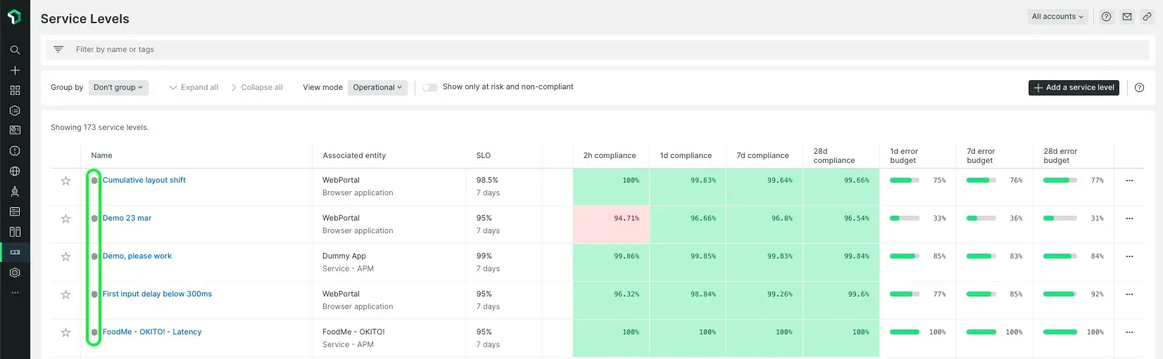 One of the promised outcomes of implementing service levels is that you'll be able to adjust your alert policies and cut notifications down to those issues that are actually damaging your client experience, and pose a risk to your business.