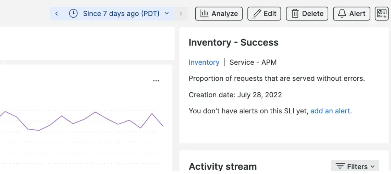 As an example of taking the granularity too far, adding a chart widget in a dashboard is also a user experience. However, creating a specific SLO for this action doesn't provide additional value compared to the previous SLO about users successfully interacting with the dashboard UI.
