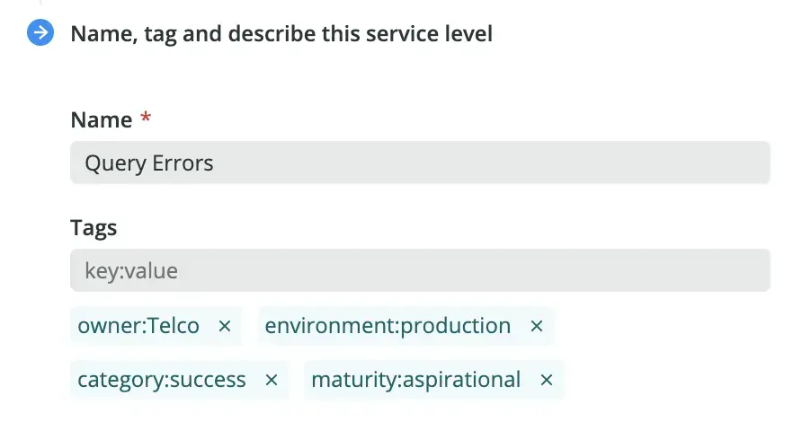 We recommend that you add tags to your SLI, so you can later use them for searching, filtering, and grouping SLIs on the UI.