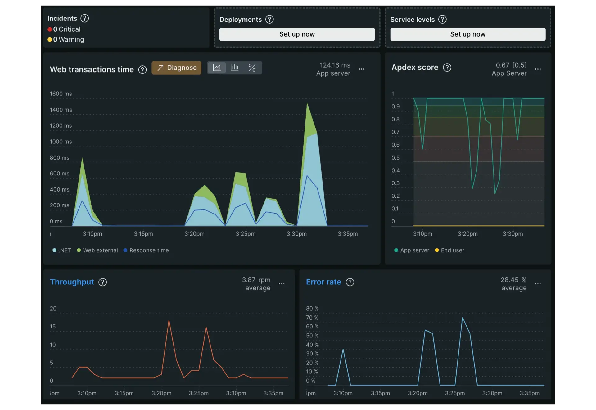 An image displaying New Relic's APM monitoring page