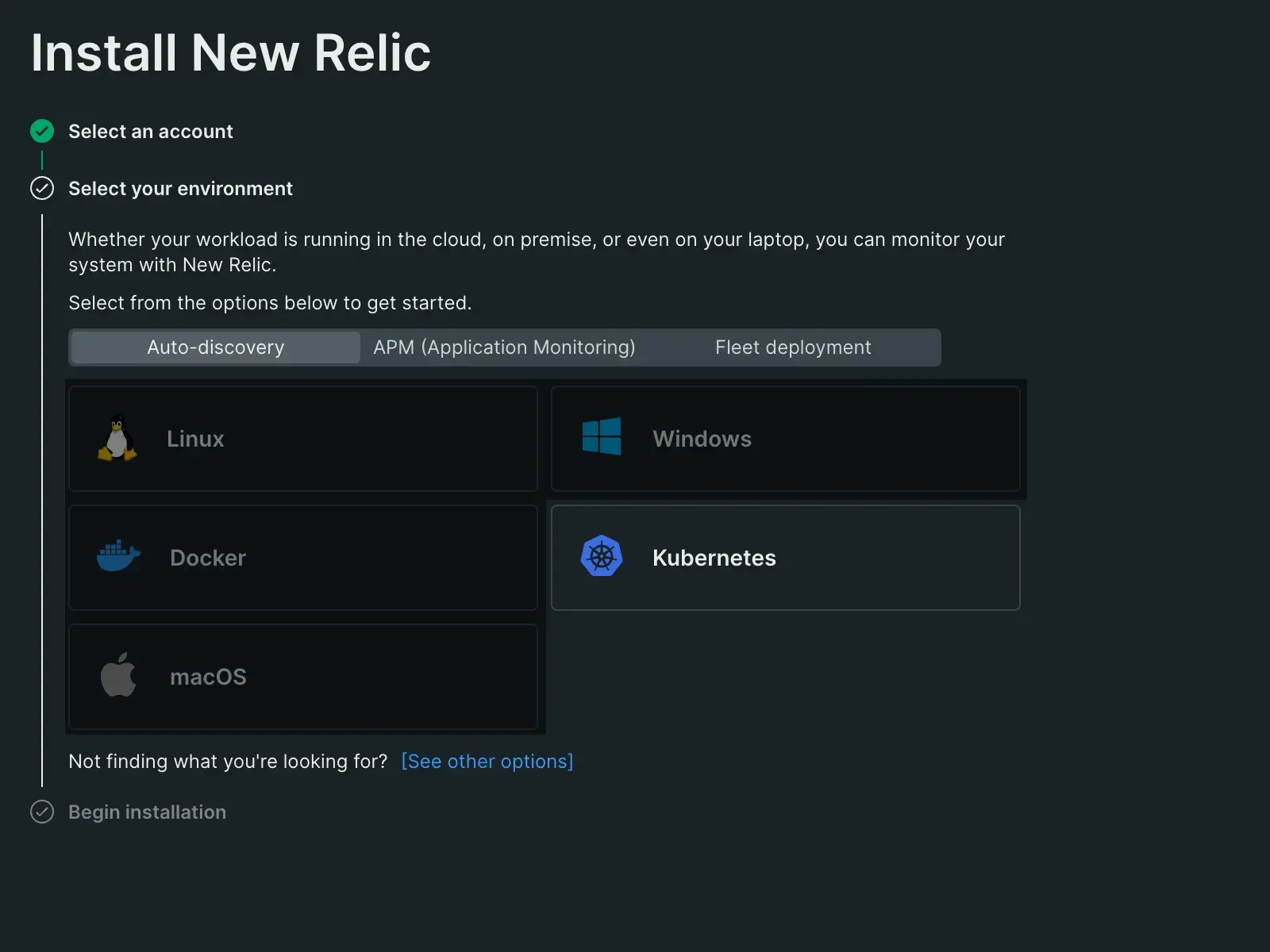 An image displaying New Relic's guided installation for Kubernetes