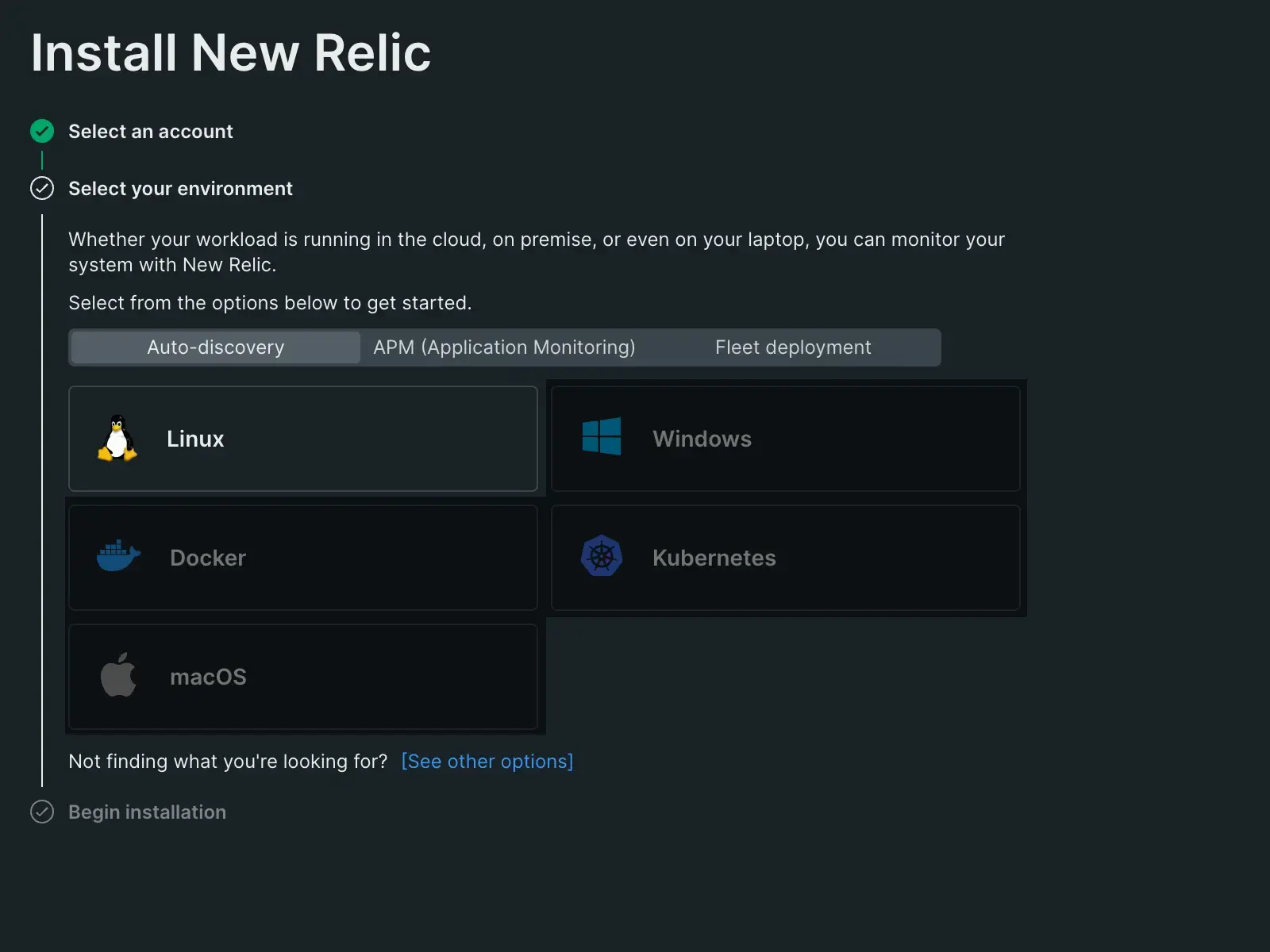 An image displaying New Relic's guided installation for Linux