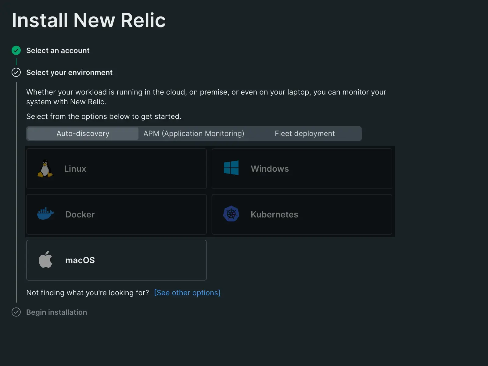 An image displaying New Relic's guided installation for macOS
