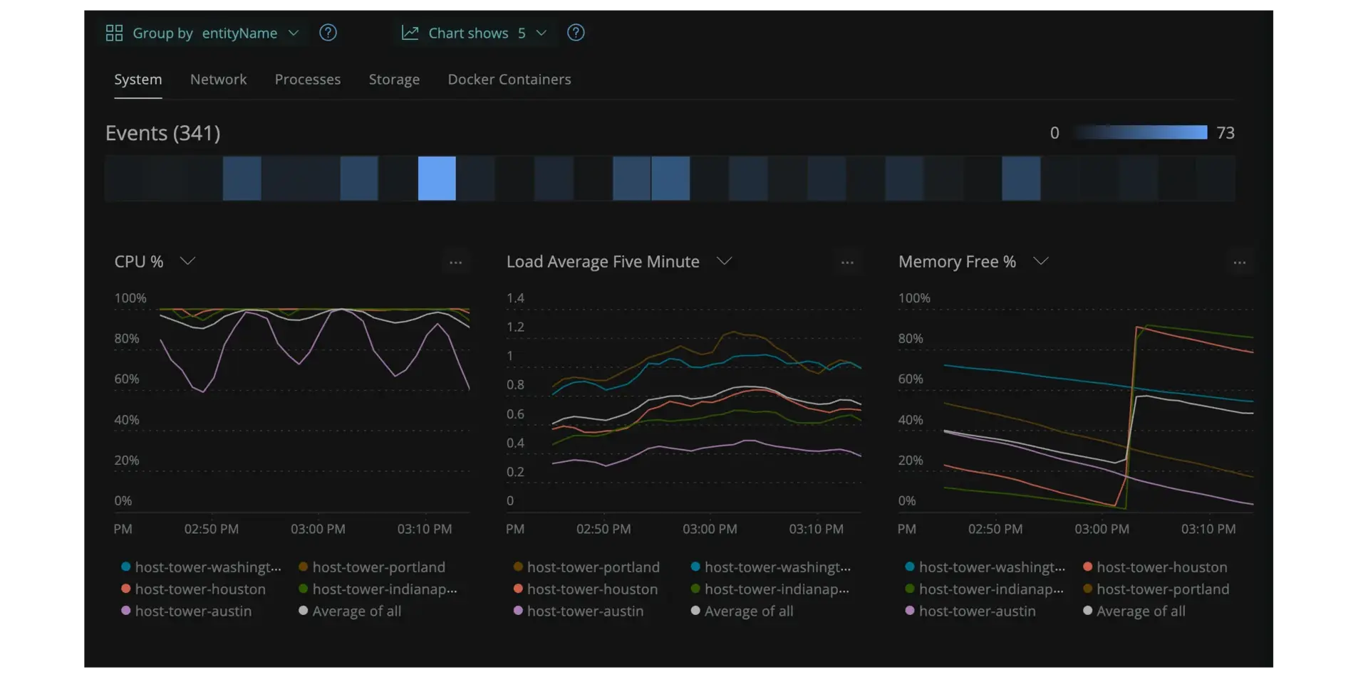 An image displaying New Relic's infrastructure monitoring dashboard