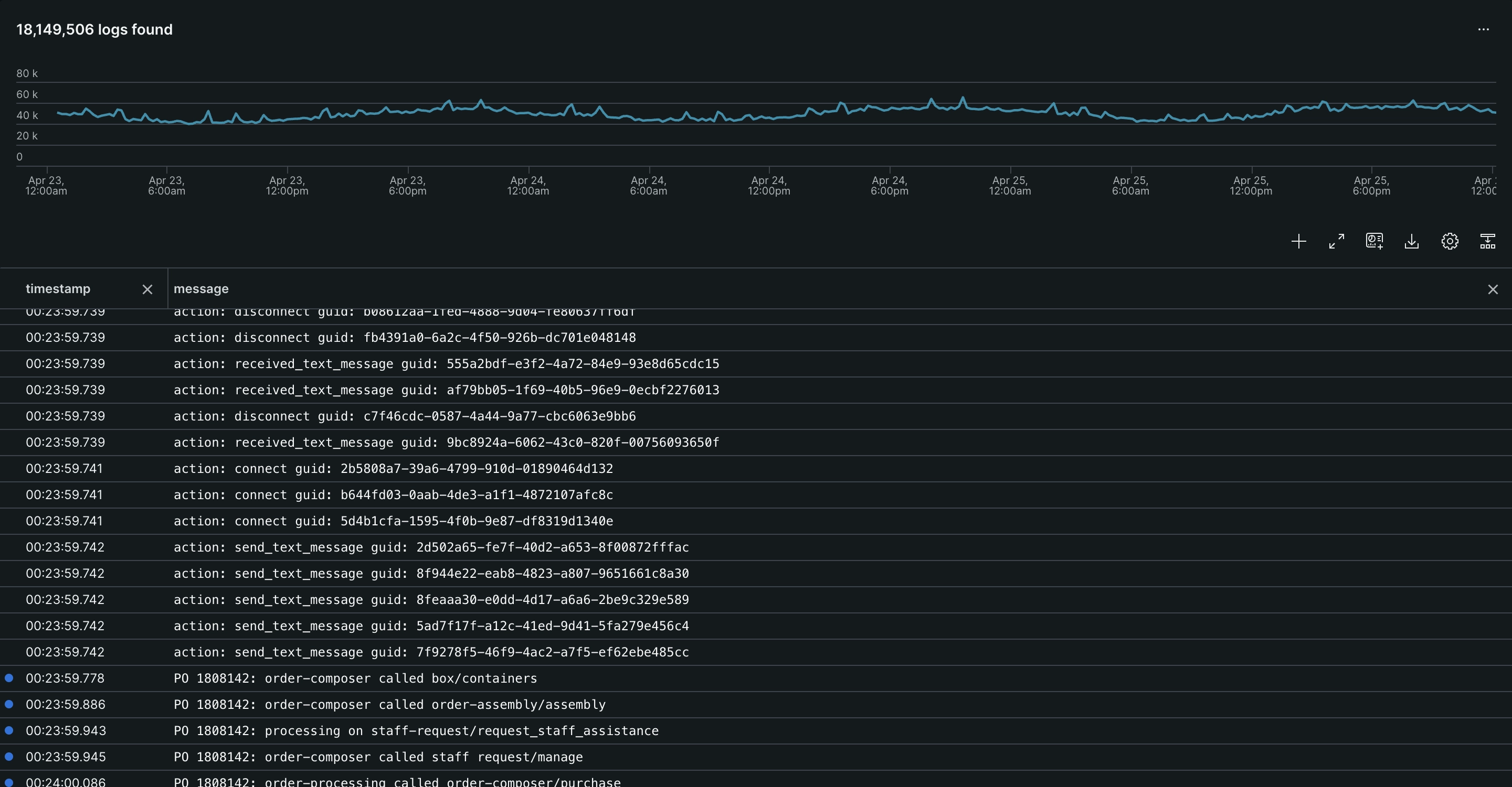 An image displaying New Relic's log monitoring dashboard