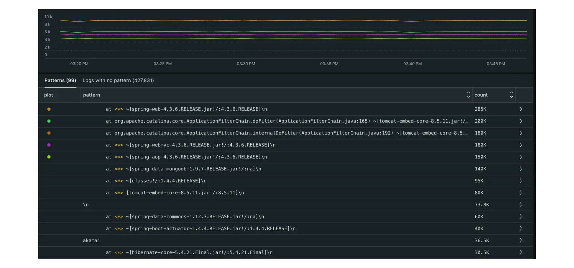 Once installed, your log monitoring is done in the Logs section of the UI, exactly like it is in Datadog. You can use our guided installations for logs after setting up any of our infrastructure or APM agents.