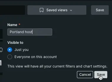 hostname = host-tower-portland. One other possibility is to filter down by app names, or maybe by alert status.Name the view, then click Save.