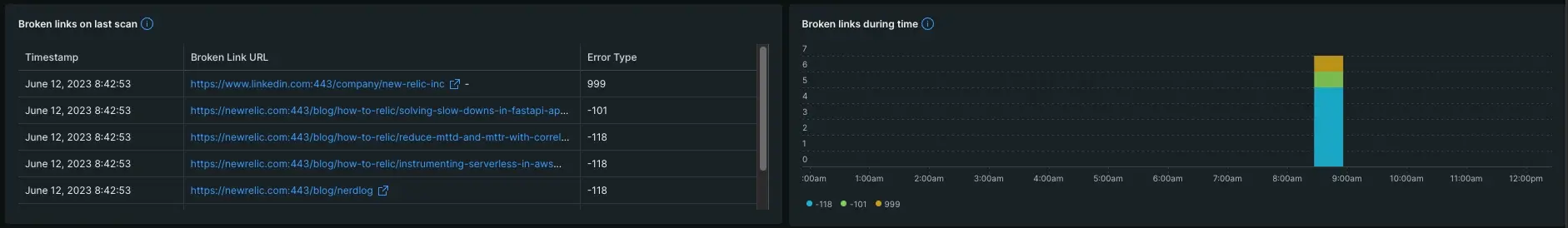 Once you've chosen pages to monitor, New Relic deploys a set of monitors from different servers around the globe that checks your page for website availability, broken links, performance, and SSL certificate expiration. To get started, we recommend choosing your homepage.