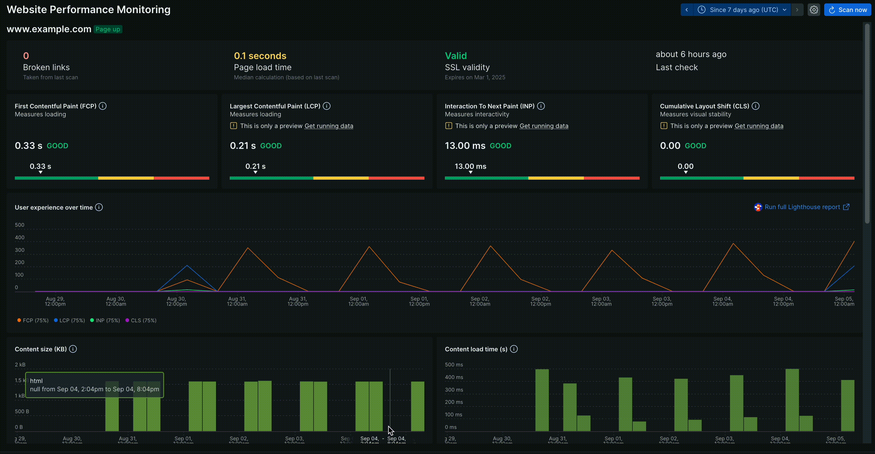 Website performance monitoring is designed to simplify getting detailed insight about your site. We recommend you start with these next steps: