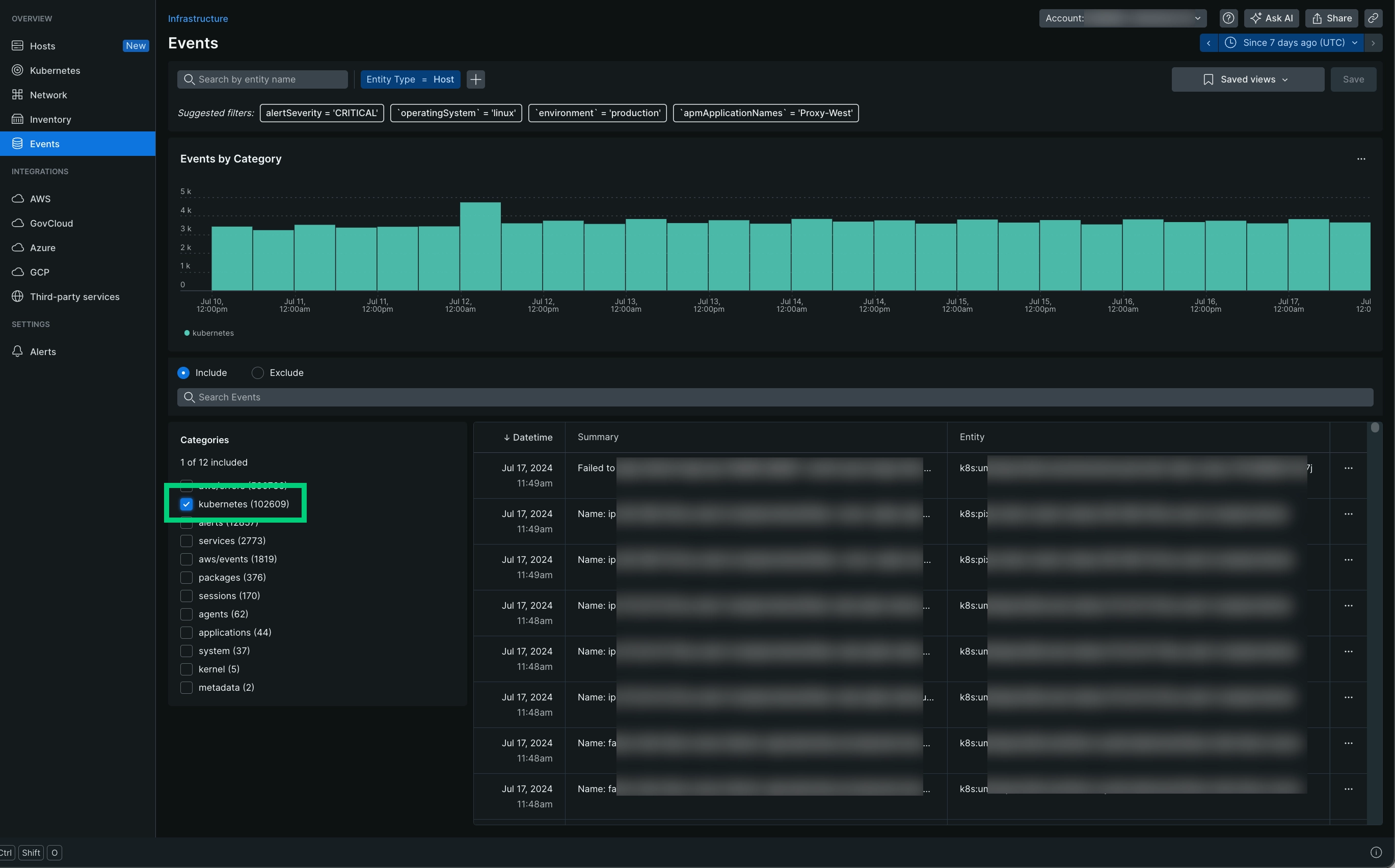 1. Go to one.newrelic.com > All capabilities > Infrastructure > Events.