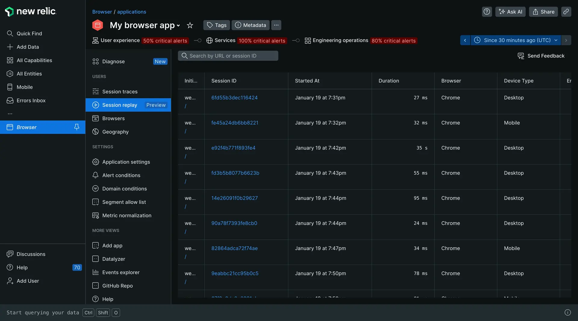 Allez à one.newrelic.com > All Capabilities > Browser.