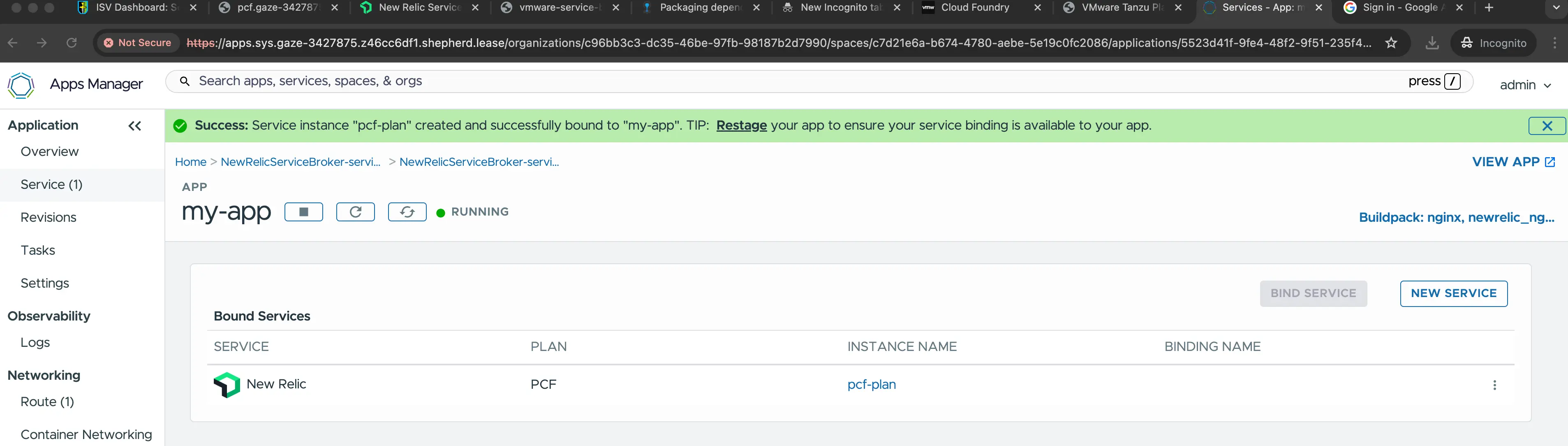 Cliquez sur le bouton + à droite de « New Relic Service Broker » que vous avez téléchargé.