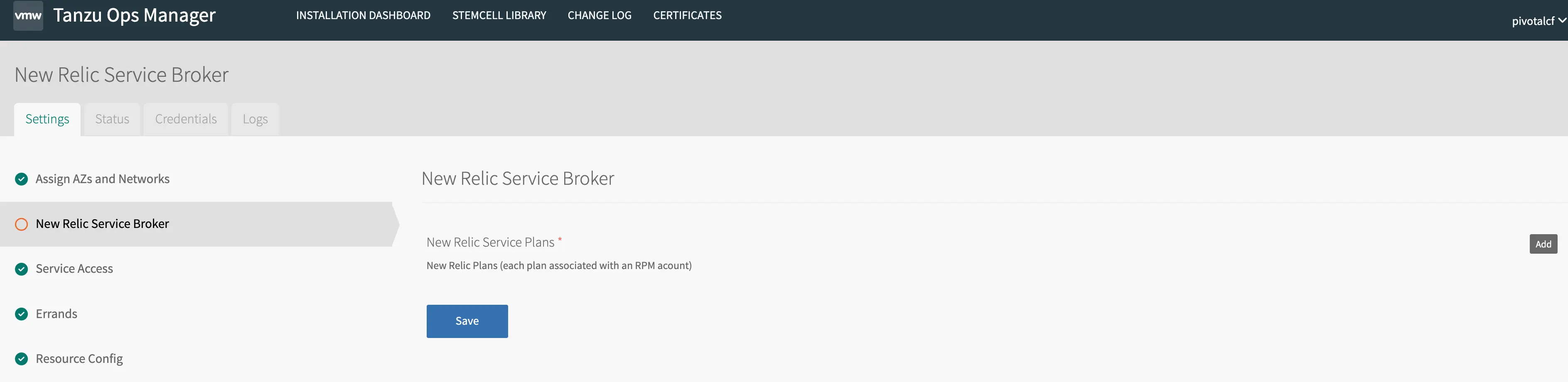 Configurez le New Relic Service Broker. Cliquez sur Ajouter dans l’écran Plan de service pour créer un nouveau plan de service.