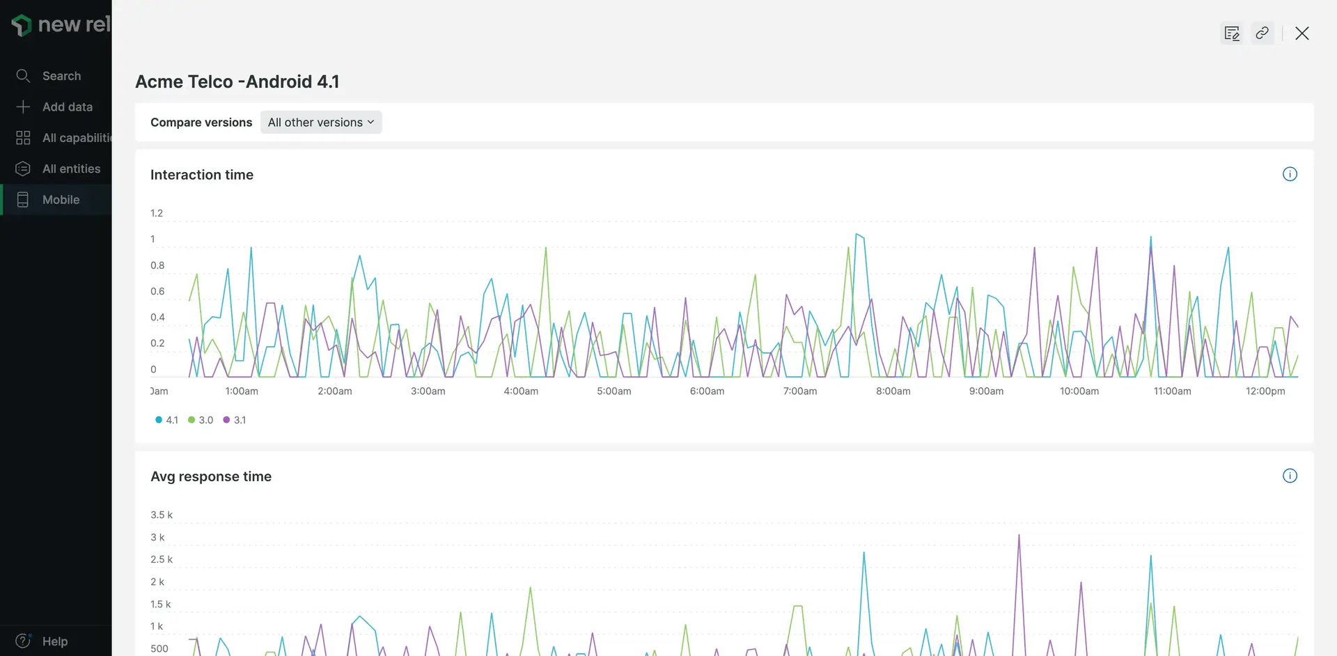 - Allez à one.newrelic.com > All capabilities > Mobile > (select an app) > Usage > Versions.