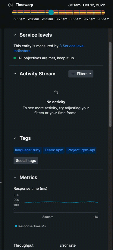 Vous pouvez découvrir les mêmes connexions relationnelles disponibles dans les cartes de services avec notre explorateur NerdGraph, un outil pour exécuter des requêtes et des mutations GraphQL . Pour commencer, consultez le didacticiel NerdGraph : Afficher les données d’entité.