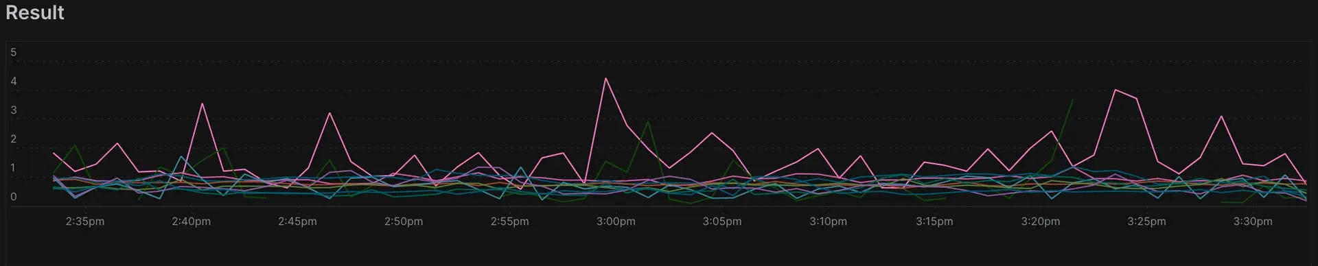 Tout d'abord, vous pouvez compter le nombre d'appels API par minute au cours de la dernière heure. Cela renvoie 60 points de données sur un graphique :