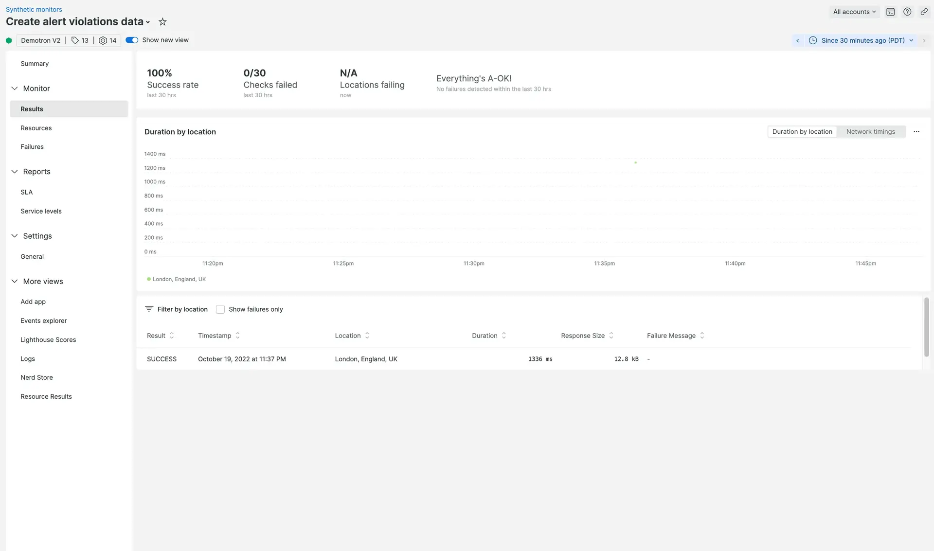 - Accédez à Synthetic Monitoring > Results.